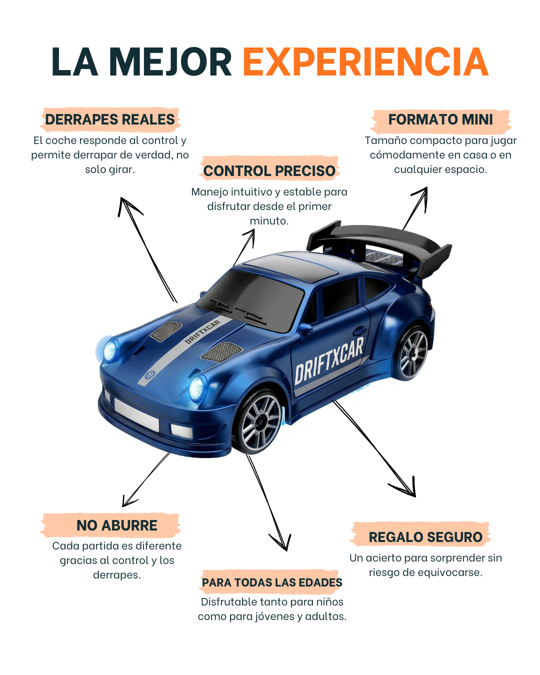 DriftXCar es un mini coche de drifting que ofrece control real y derrapes de verdad en un formato compacto. Fácil de manejar y muy divertido desde el primer uso, permite jugar cómodamente en casa y mejorar el control con cada partida. Un producto pensado para disfrutar, no aburrirse y acertar tanto si es para uno mismo como para regalar.